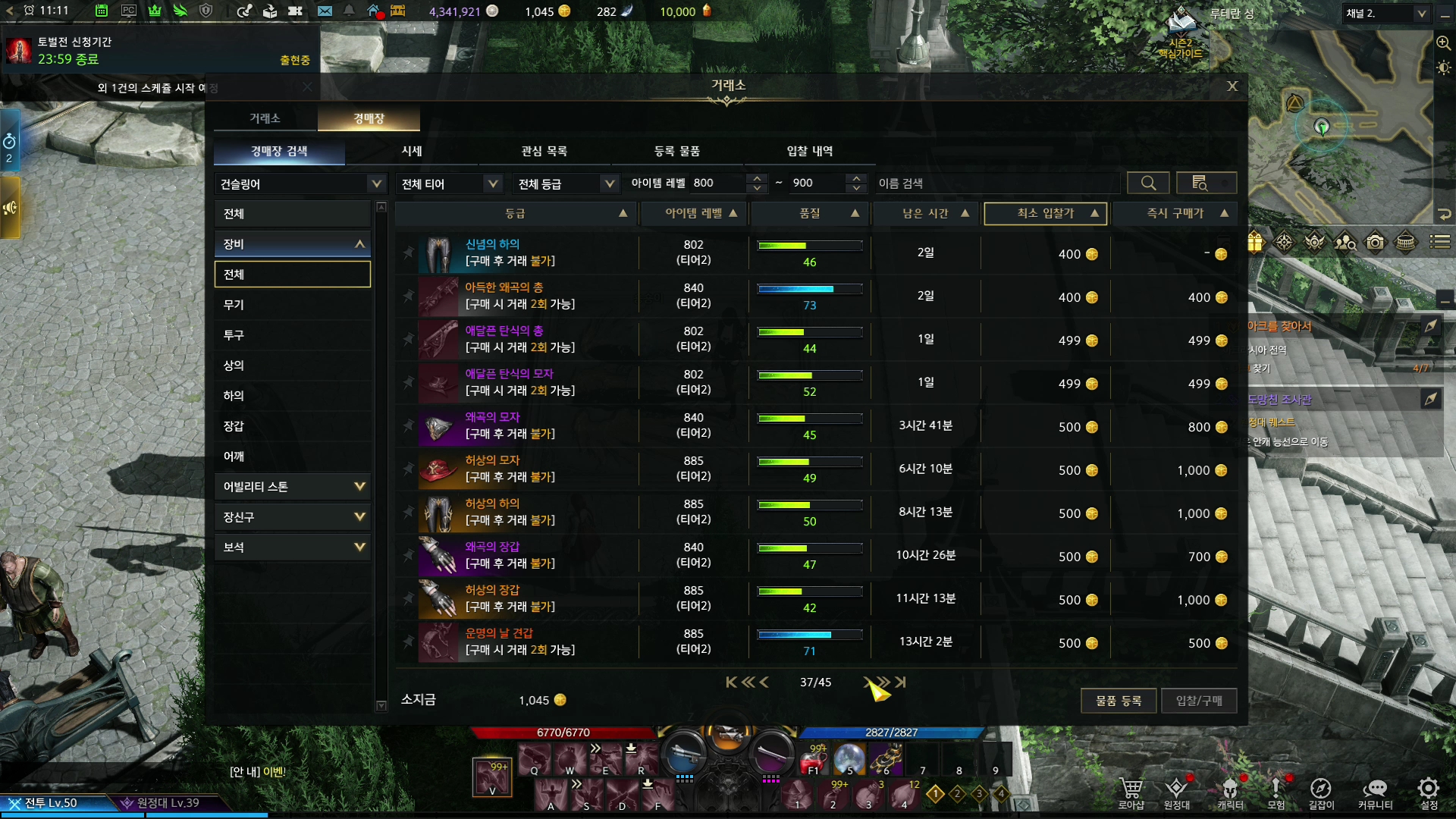 다음 메인퀘스트를 위해서는 400이 되어야하는데 카던에서 장비를 파밍 한 다음 장비강화하는 방법과 다른 하나는 경매장을 이용하는 방법입니다.