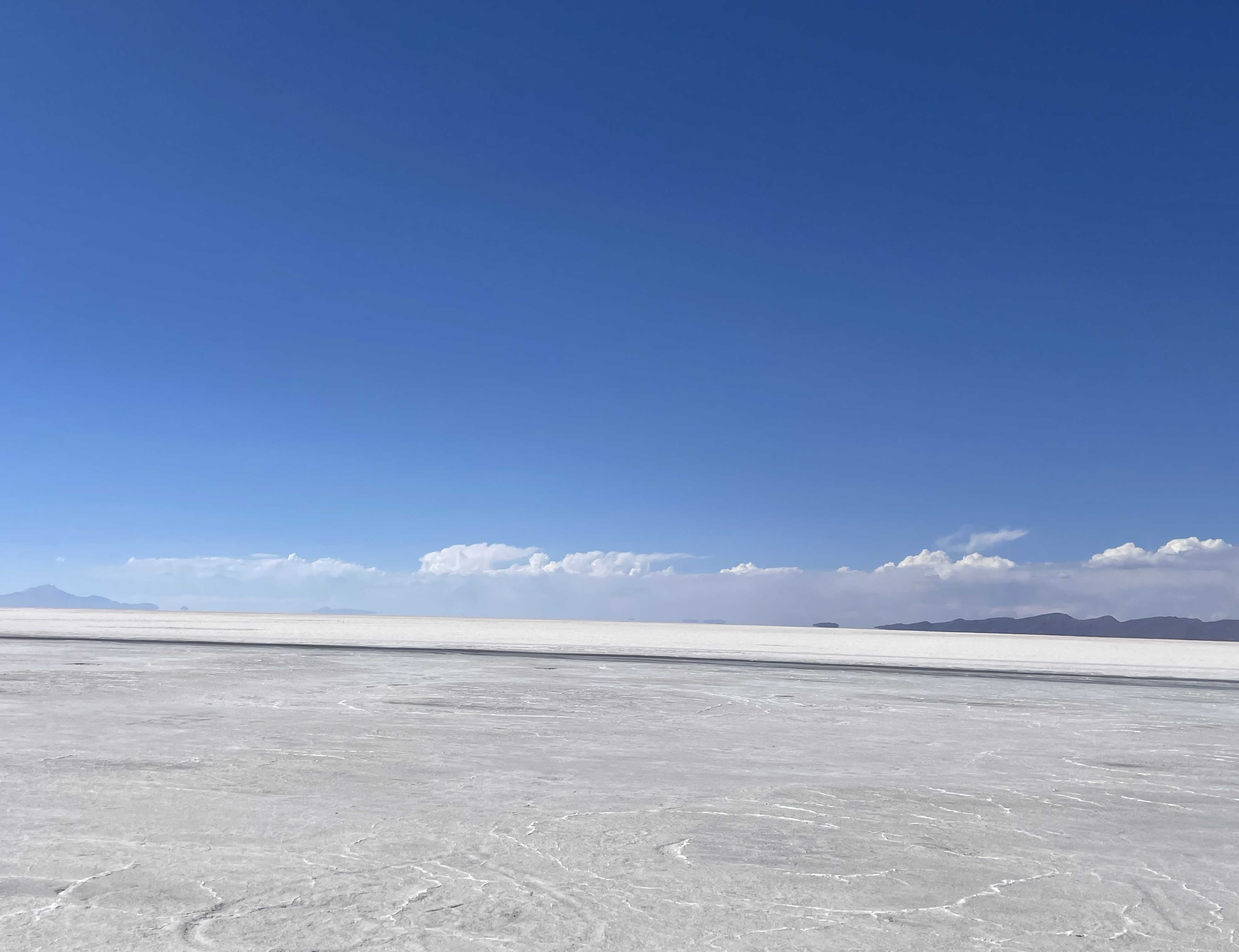 소금사막을 이동 중 차량을 잠시 멈췄습니다.