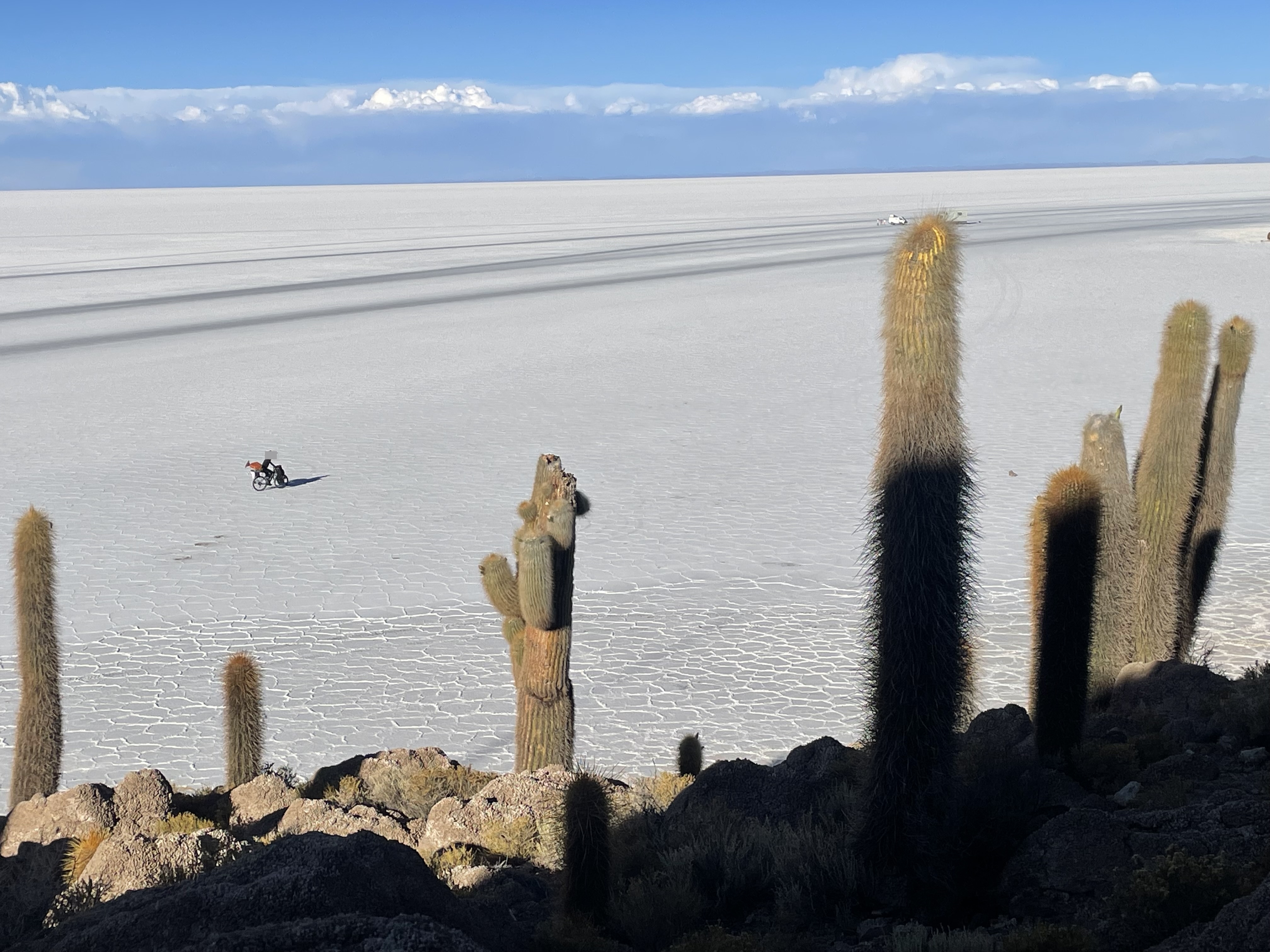 섬을 구경하는 도중 자전거를 타고 우유니사막을 횡단하는 중인 사람을 볼 수 있었습니다.