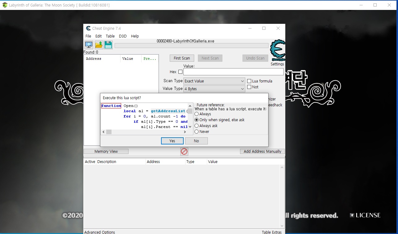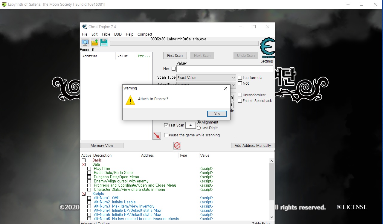 치트엔진 7.4 이후 버전 사용하는걸 추천드립니다.