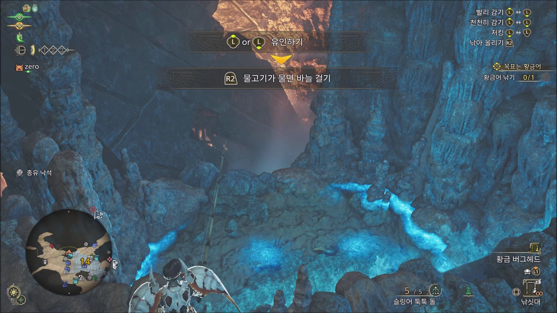 저 웅덩이 안에 루어를 황금 버그헤드로 변경 후 던지면 낚시가 가능합니다.