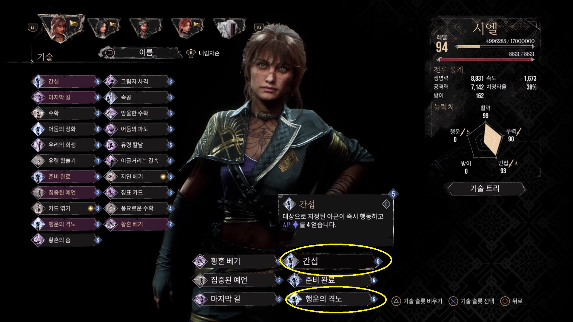 스킬은 노란색으로 표시한 메조포르테와 스탕달이 필요합니다.