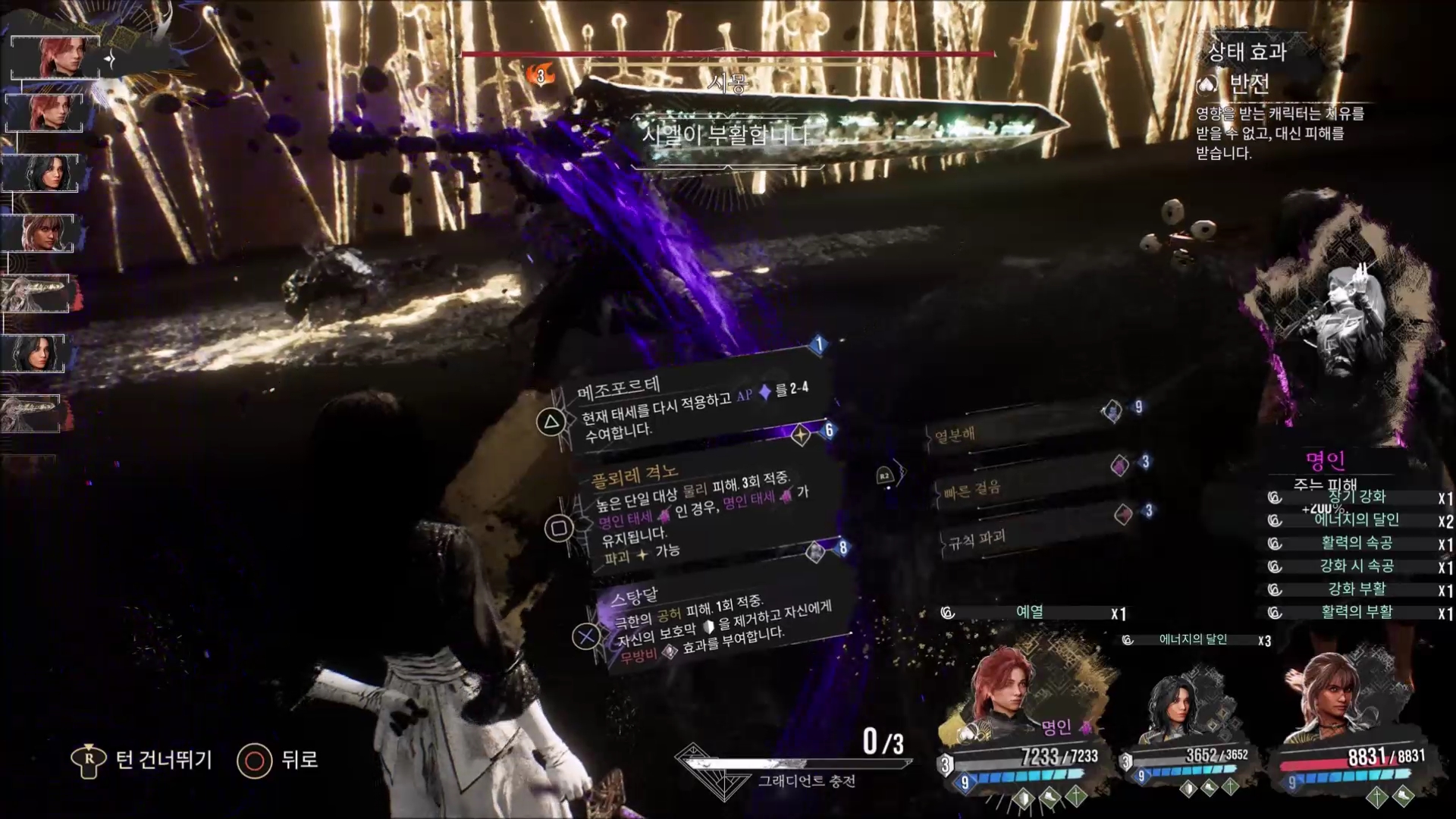 메조포르테 혹은 턴 넘기기로 2번째 캐릭터인 루네에게 턴을 넘깁니다.