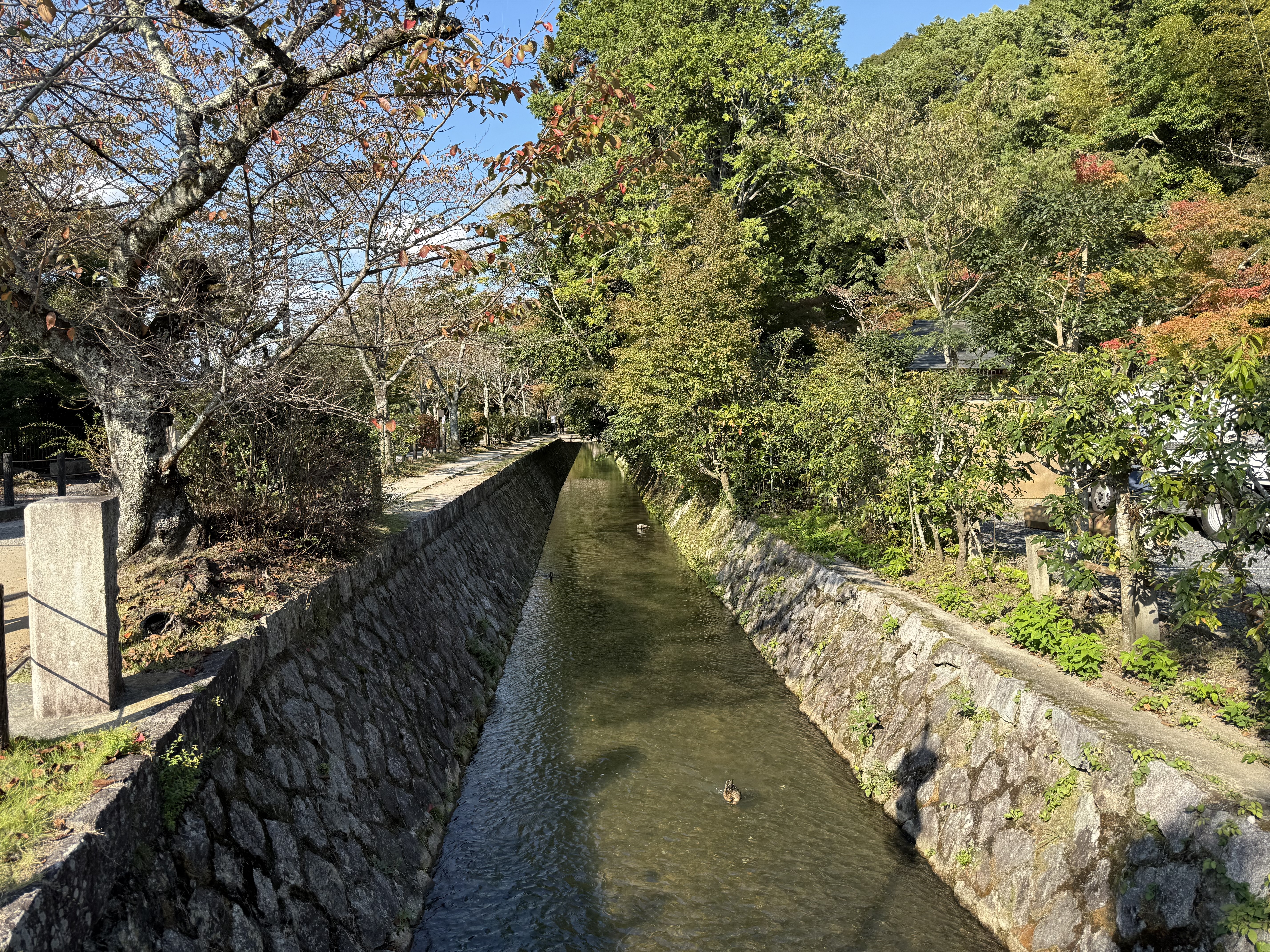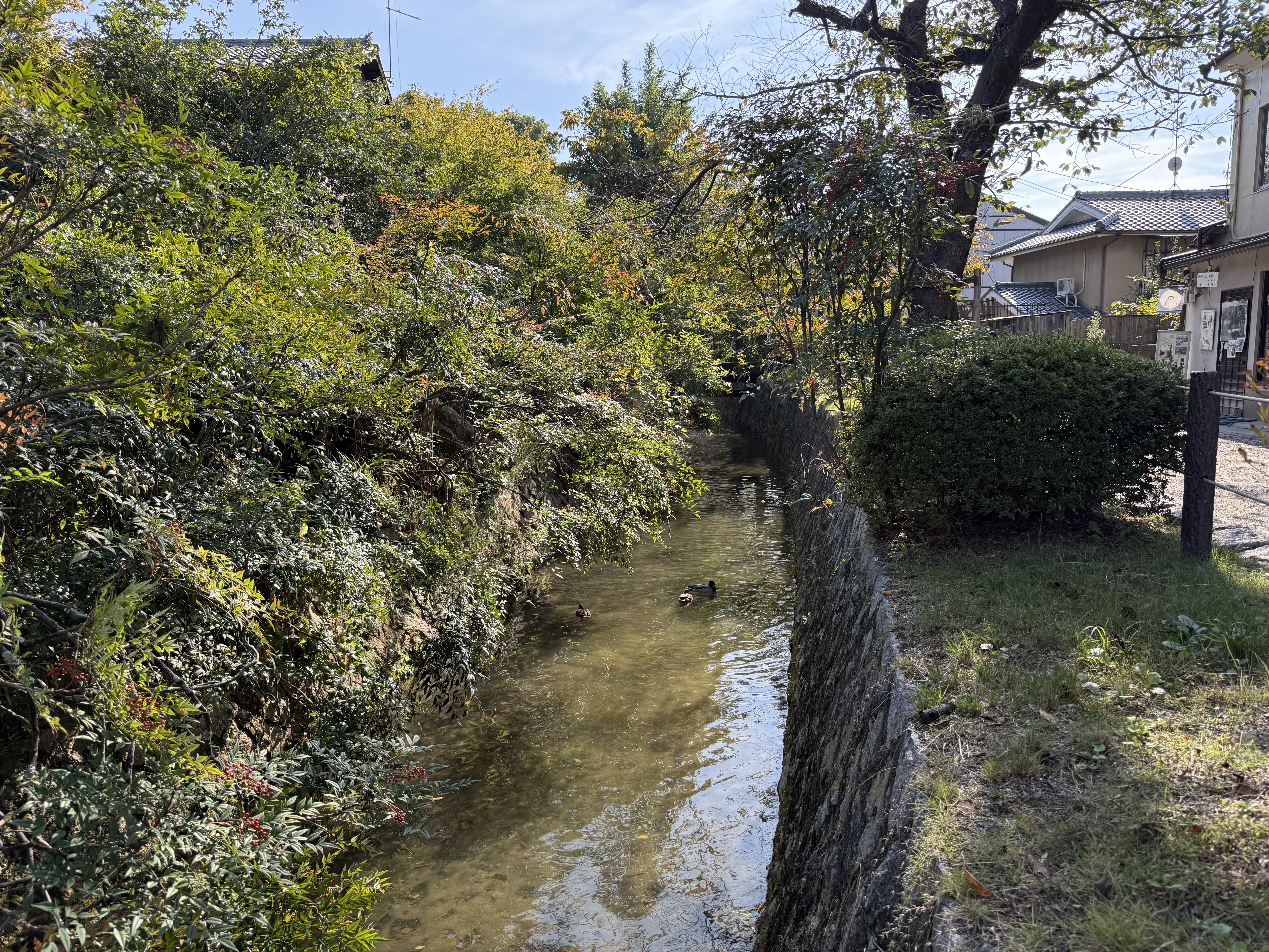 철학 길에 있던 강가에는 여유자적 헤엄치는 오리들과 물고기들도 간간히 보이더군요.