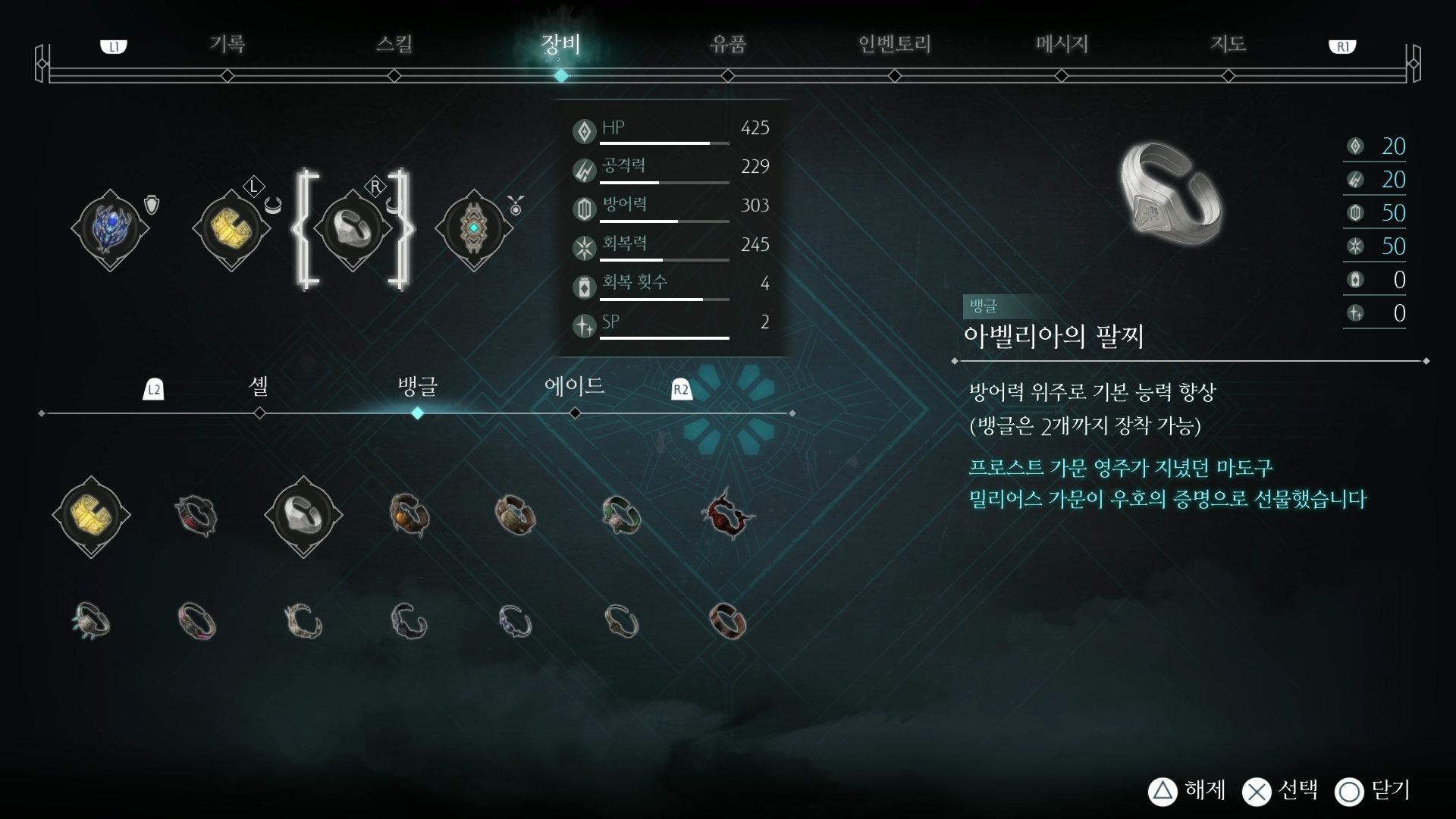 뱅글은 회복력이 가장 높은 종류로 2개를 장착합니다.