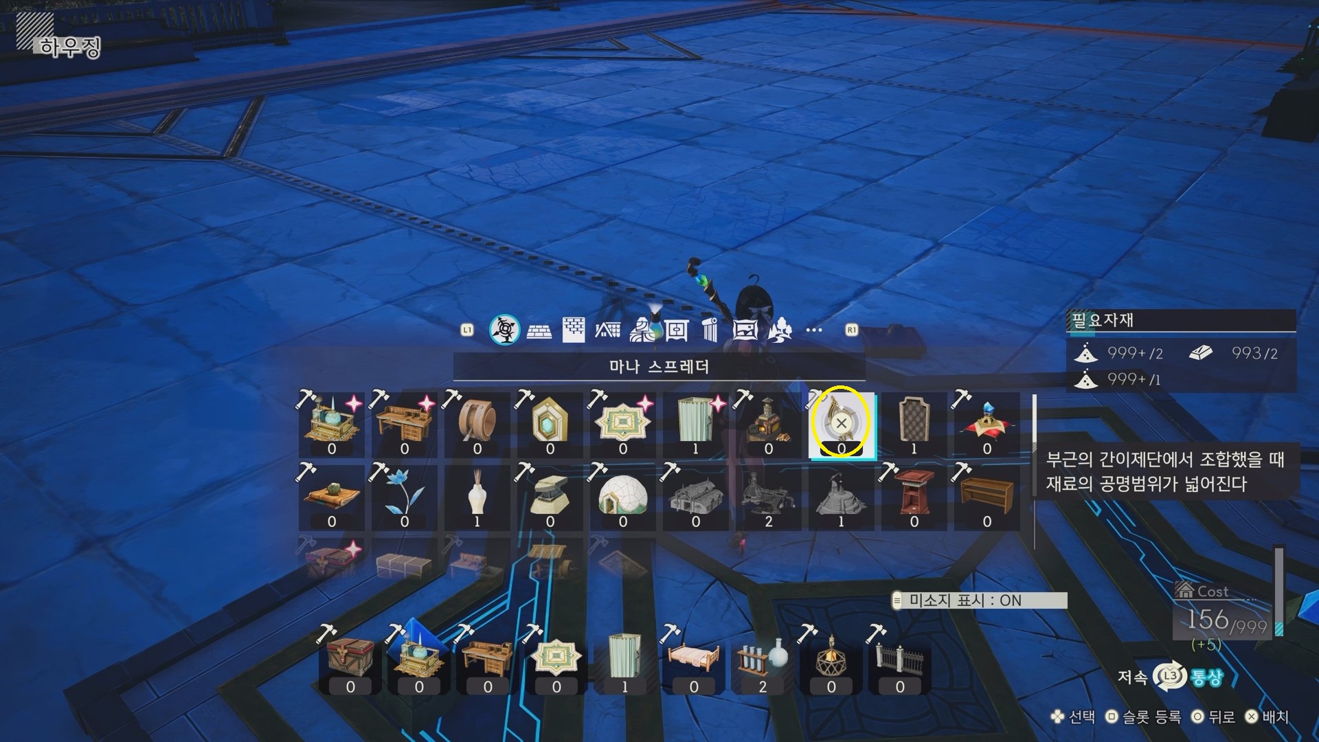 간이제단이 설치 되었다면 연금 관련 하우징쪽에 결정화와 마나 스프레더가 보이고 설치가 가능해집니다.