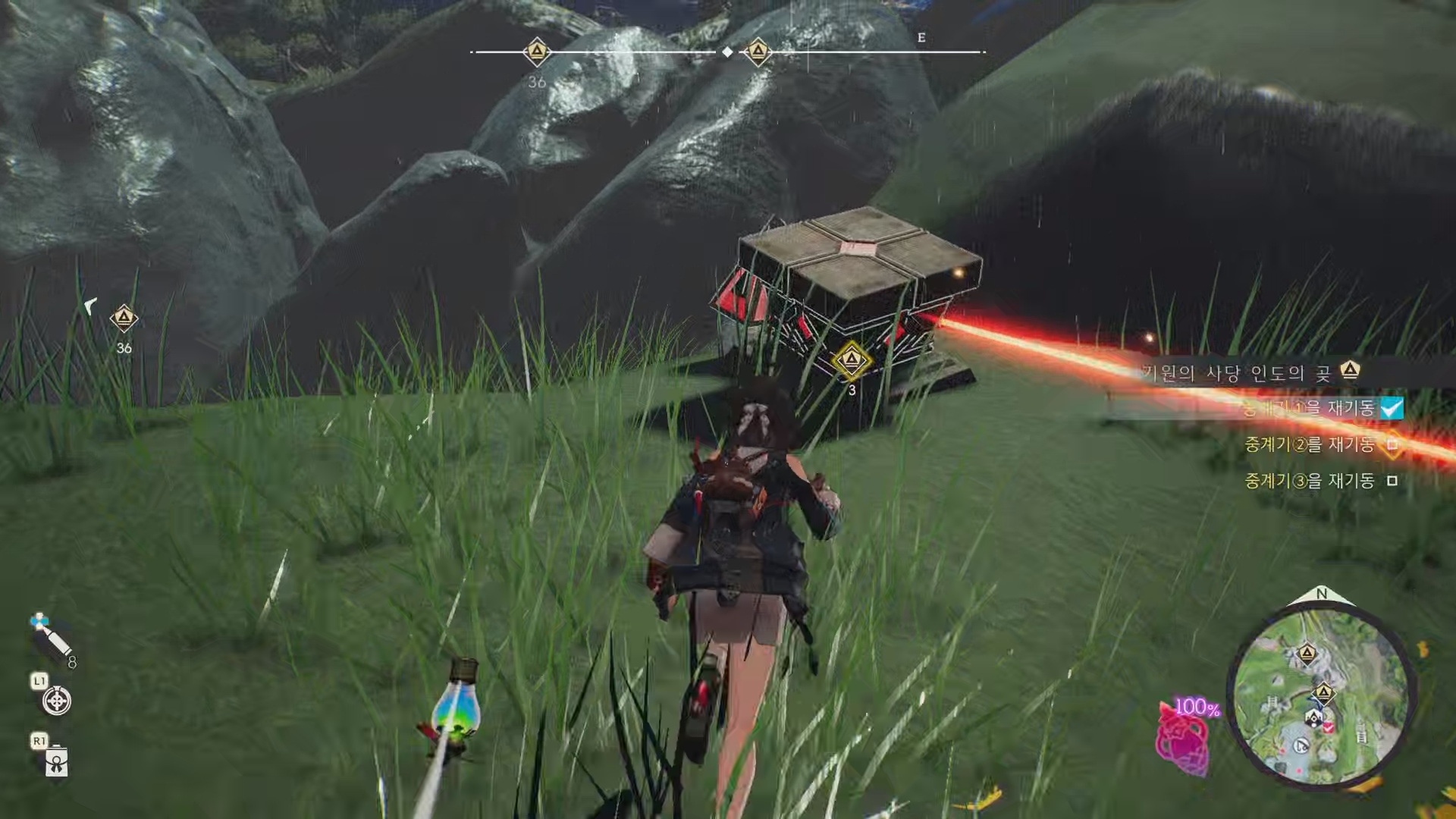 퍼즐 근처 벽에 장치를 총으로 쏘면 됩니다.