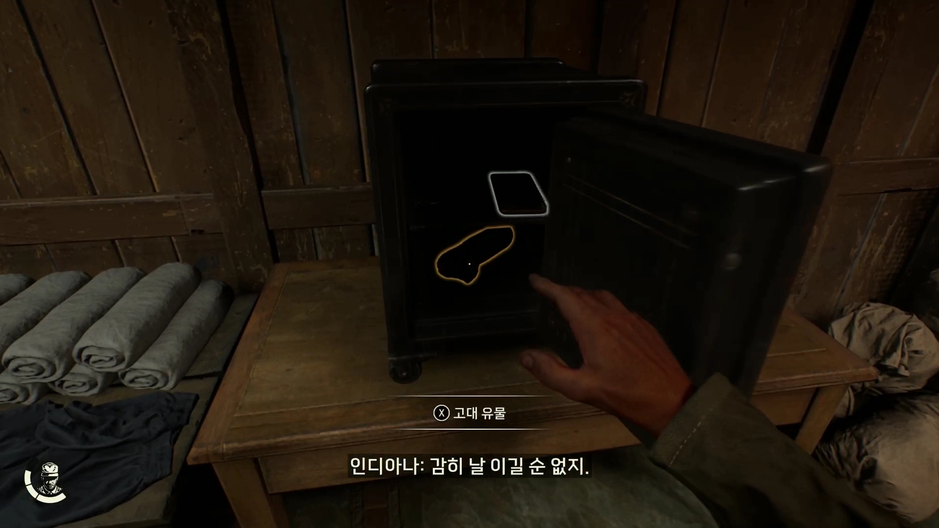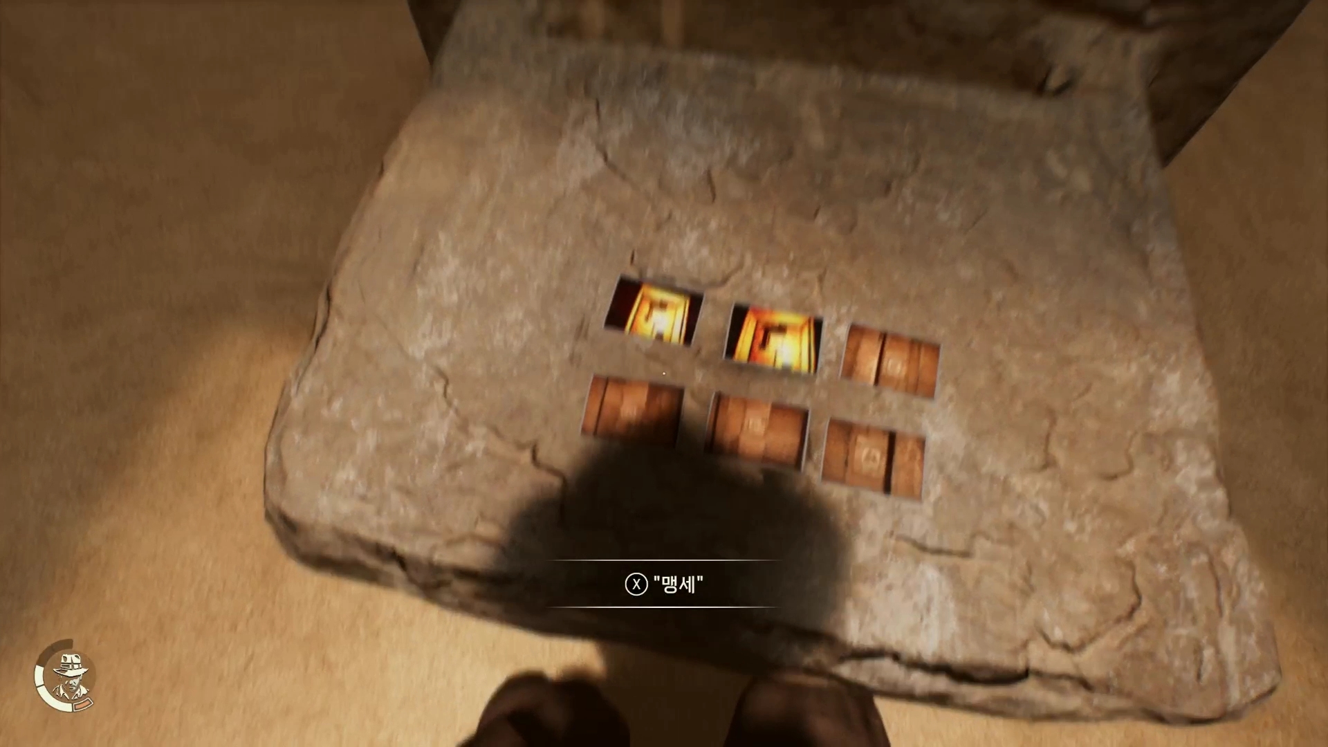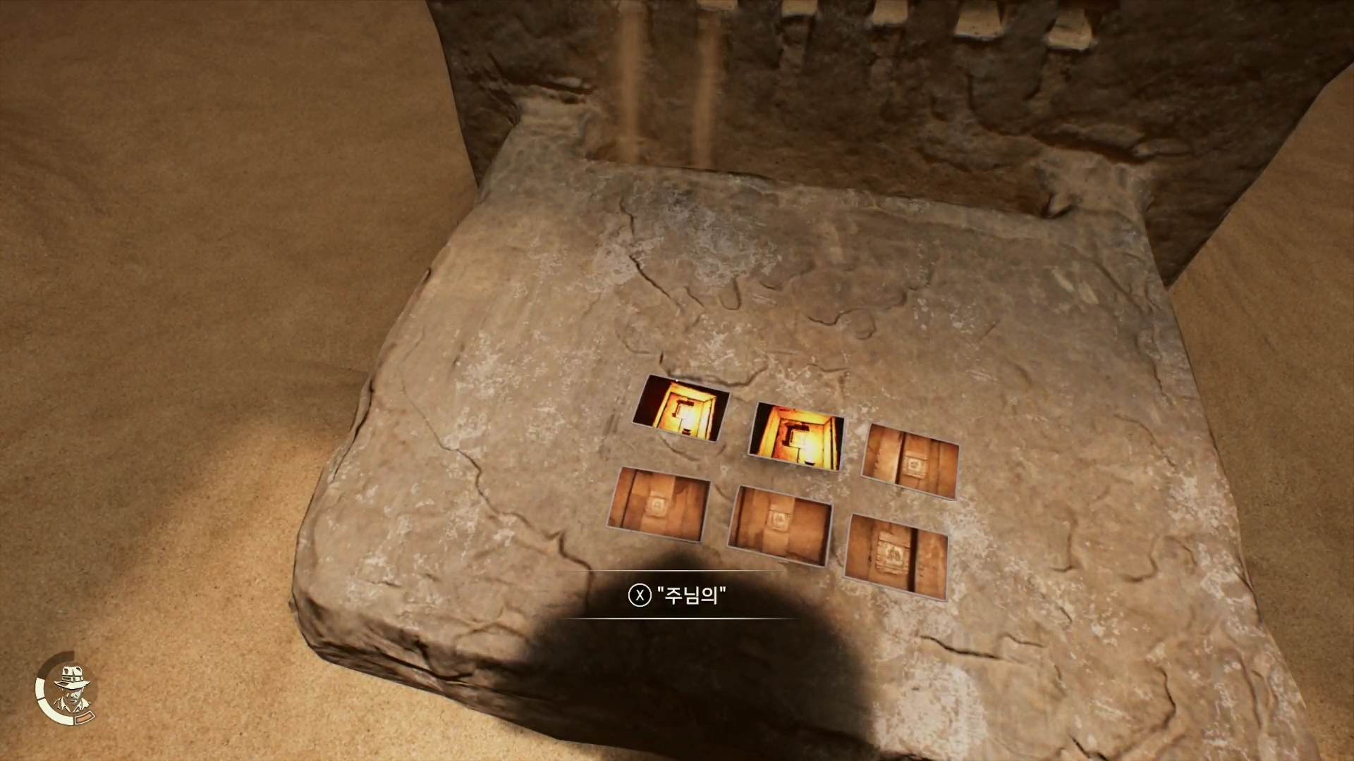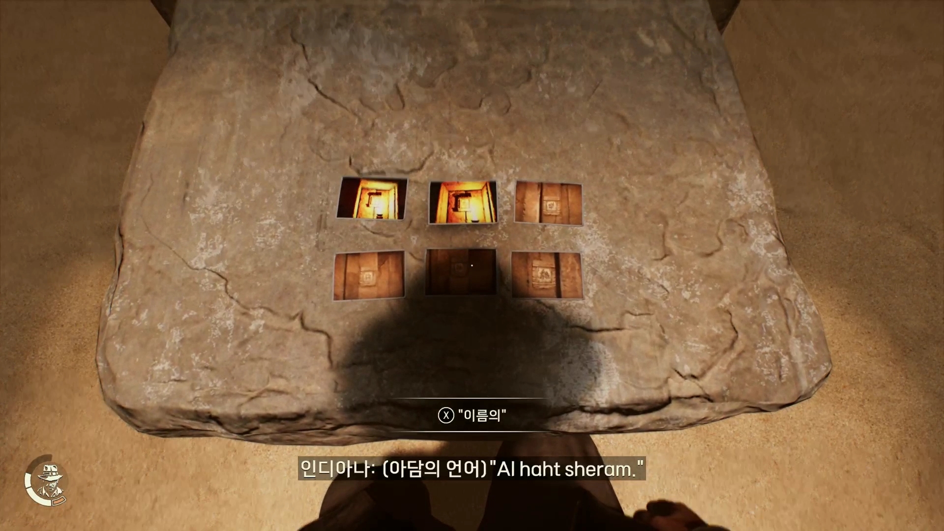 돌기둥을 하나씩 천천히 돌리다가 정확한 위치에 오면 인디아나가 대사를 합니다.