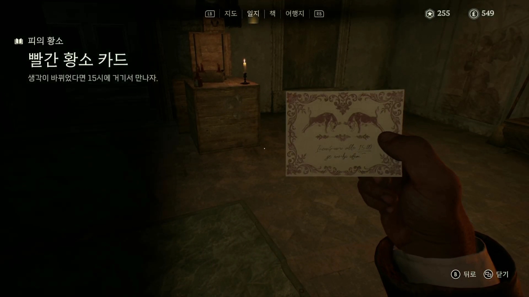 이번 퍼즐의 힌트는 쪽지를 뒤로 돌리면 나옵니다.