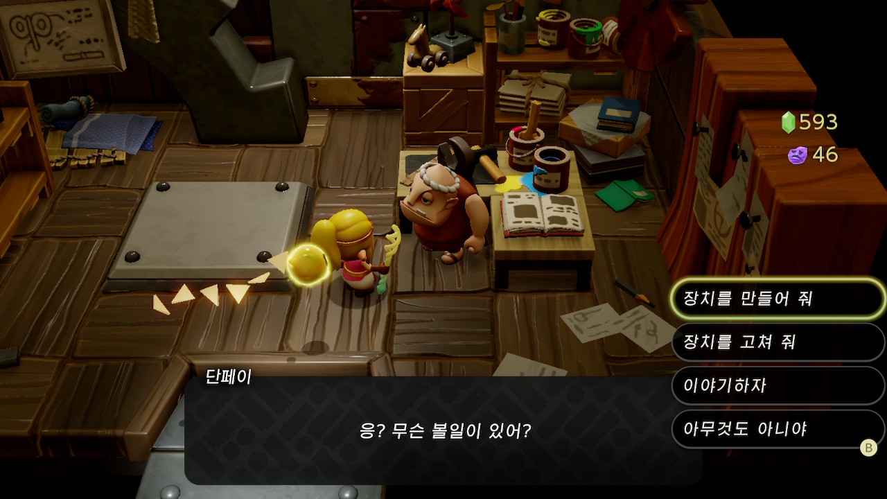 소환 이후 단페이에게 장치를 만들어 줘를 선택합니다.